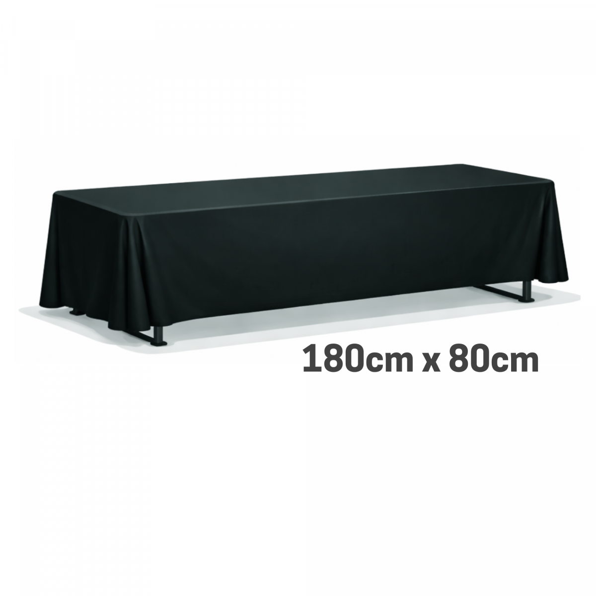 Tisch (180cm x 80cm) mit Tischdecke (220cm x 130cm schwarz)